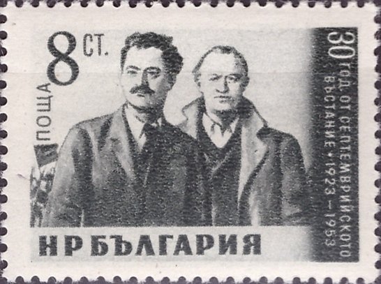 Visibility: public Image owner: none postage 9/22/1953 8s olgray issue=September Revolution 30th d=Dimitrov & Kolarov unwmk perf=13 Crops No visible images cropped from this one. Measurements Resolution is unknown. Source Source name: Colnect File URL: http://i.colnect.net/images/b/2158/152/Georgi-Dimitrov-and-Vasil-Kolarov.jpg Uploaded November 20, 2014, 8:54 pm by Stan Shebs |