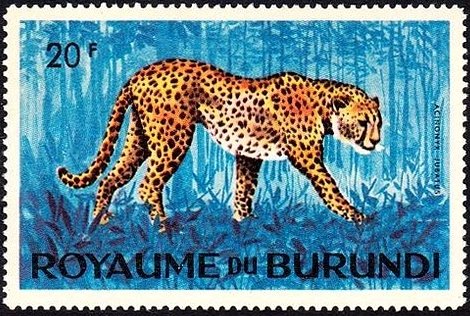 Visibility: public Image owner: none postage 2/10/1964 20fr dt=animals (1964 Burundi) d=cheetah (1964) unwmk Crops No visible images cropped from this one. Measurements Resolution is unknown. Source Source name: Colnect File URL: http://i.colnect.net/b/2172/665/Cheetah-Acinonyx-jubatus.jpg Uploaded November 20, 2014, 9:44 pm by Stan Shebs |