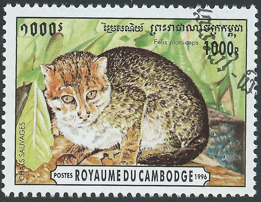 Visibility: public Image owner: none postage 2/8/1996 1000r multi dt=Wild Cats (1996) d=Felis planiceps (1996) unwmk Crops No visible images cropped from this one. Measurements Resolution is unknown. Source Source name: Colnect File URL: http://i.colnect.net/b/2340/894/Flat-headed-Cat-Prionailurus-planiceps.jpg Uploaded November 20, 2014, 11:28 pm by Stan Shebs |