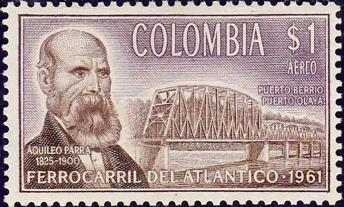 Visibility: public Image owner: none airmail 9/28/1962 1p redbrn&brnvio issue=Completion of Colombia Atlantic Railway unwmk perf=13x12.5 Crops No visible images cropped from this one. Measurements Resolution is unknown. Source Source name: Colnect File URL: http://i.colnect.net/b/2258/741/Aquileo-Parra-Railway-Bridge-over-Magdalena-River.jpg Uploaded November 24, 2014, 6:35 pm by Stan Shebs |
