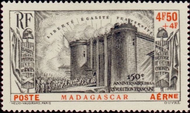 Visibility: public Image owner: none semipostal 4.50+4fr issue=French Revolution 150th d=storming of the Bastille unwmk Crops No visible images cropped from this one. Measurements Resolution is unknown. Source Source name: Colnect File URL: http://i.colnect.net/b/846/327/150th-Anniversary-Of-The-Revolution.jpg Uploaded August 22, 2014, 10:14 pm by Stan Shebs |