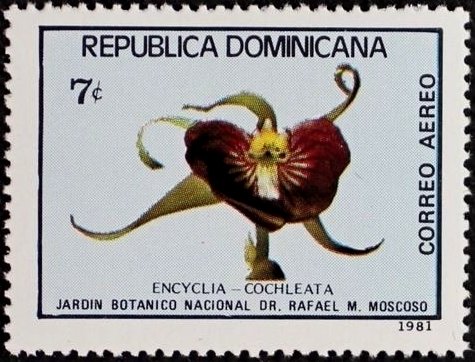 Visibility: public Image owner: none airmail 12/14/1981 7c multi dt=orchids (1981 Dominican Republic) d=Encyclia cochleata (1981) wmk=crosses & circles perf=13.75 Crops No visible images cropped from this one. Measurements Resolution is unknown. Source Source name: Colnect File URL: http://i.colnect.net/b/2288/717/Encyclia-cochleata.jpg Uploaded November 25, 2014, 10:01 pm by Stan Shebs |