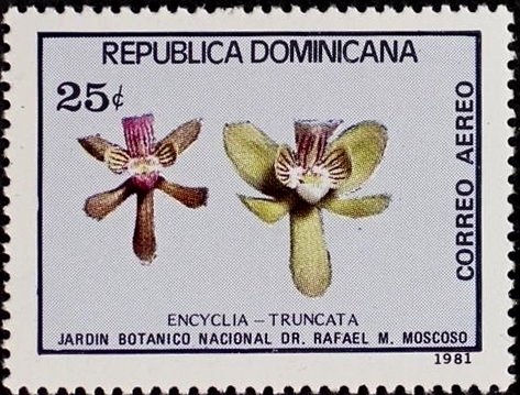 Visibility: public Image owner: none airmail 12/14/1981 25c multi dt=orchids (1981 Dominican Republic) d=Encyclia truncata wmk=crosses & circles perf=13.75 Crops No visible images cropped from this one. Measurements Resolution is unknown. Source Source name: Colnect File URL: http://i.colnect.net/b/2288/719/Encyclia-truncata.jpg Uploaded November 25, 2014, 10:01 pm by Stan Shebs |