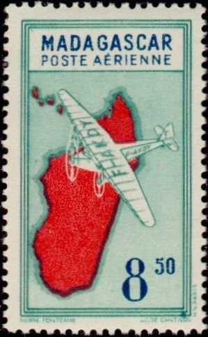 Visibility: public Image owner: none airmail 8.50fr blgrn&red issue=1942 air no RF d=airplane over map of Madagascar unwmk Crops No visible images cropped from this one. Measurements Resolution is unknown. Source Source name: Colnect File URL: http://i.colnect.net/b/846/347/Airmail.jpg Uploaded August 22, 2014, 10:14 pm by Stan Shebs |