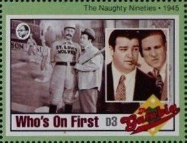 Visibility: public Image owner: none postage 3/25/1993 3d multi issue=Baseball Films d=Bud Abbott and Lou Costello unwmk perf=13 Crops No visible images cropped from this one. Measurements Resolution is unknown. Source Source name: Colnect File URL: http://i.colnect.net/b/2345/839/The-Naughty-Nineties.jpg Uploaded November 26, 2014, 5:32 pm by Stan Shebs |