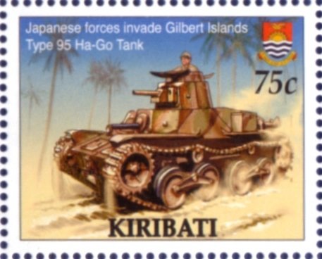 Visibility: public Image owner: none postage 4/21/2005 75c multi issue=60th Anniversary of World War II d=Japanese forces invade Gilbert Islands - Type 95 Ha-Go Tank unwmk Crops No visible images cropped from this one. Measurements Resolution is unknown. Source Source name: Colnect File URL: http://i.colnect.net/b/2296/835/Japanese-Tank.jpg Uploaded November 28, 2014, 3:31 pm by Stan Shebs |