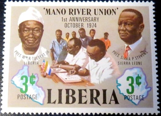 Visibility: public Image owner: none postage 10/3/1975 3c multi issue=1st Anniversary of Mano River Union d=President Tolbert and Siaka Stevens unwmk Crops No visible images cropped from this one. Measurements Resolution is unknown. Source Source name: Colnect File URL: http://i.colnect.net/b/2183/025/Presidents-Tolbert-and-Stevens-first-anniversary-of-Mano-Ri.jpg Uploaded November 28, 2014, 6:45 pm by Stan Shebs |