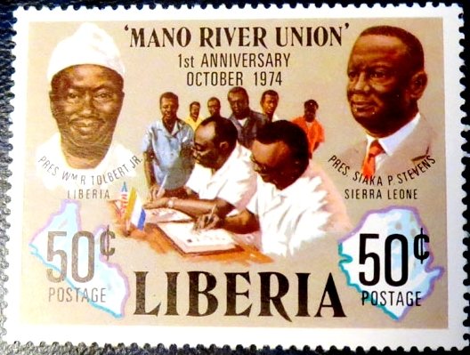 Visibility: public Image owner: none postage 10/3/1975 50c multi issue=1st Anniversary of Mano River Union d=President Tolbert and Siaka Stevens unwmk Crops No visible images cropped from this one. Measurements Resolution is unknown. Source Source name: Colnect File URL: http://i.colnect.net/b/2183/029/Presidents-Tolbert-and-Stevens-first-anniversary-of-Mano-Ri.jpg Uploaded November 28, 2014, 6:45 pm by Stan Shebs |
