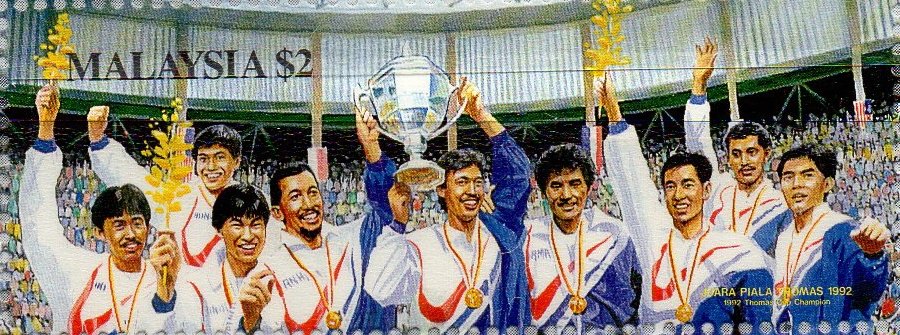 Visibility: public Image owner: none postage 7/25/1992 $2 multi issue=Malaysian Victory in Thomas Cup Badminton Championship wmk=SPM multiple perf=12x12.25 Crops No visible images cropped from this one. Measurements Resolution is unknown. Source Source name: Colnect File URL: http://i.colnect.net/images/b/2196/264/Thomas-Cup-World-Badminton-Champion.jpg Uploaded November 30, 2014, 3:33 pm by Stan Shebs |