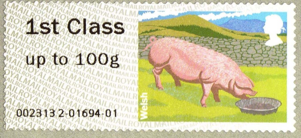 Visibility: public Image owner: none postage 4/24/2012 1st Class up to 100g multi issue=Post & Go 2012 dt=farm animals (2012) d=pigs - Welsh unwmk perf=17 Crops No visible images cropped from this one. Measurements Resolution is unknown. Source Source name: Colnect File URL: http://i.colnect.net/images/b/2299/386/Welsh-Pig-Sus-scrofa-domestica.jpg Uploaded December 1, 2014, 4:37 pm by Stan Shebs |