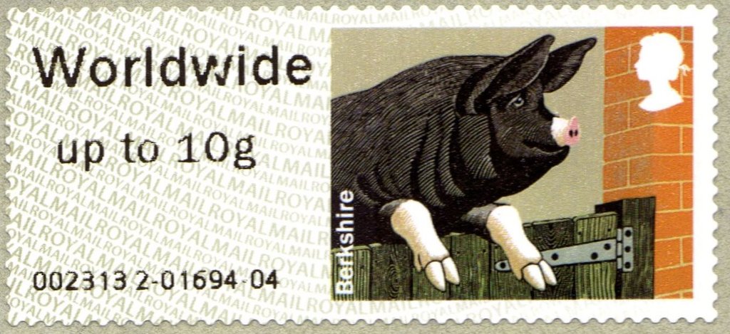 Visibility: public Image owner: none postage 4/24/2012 1st Class up to 100g multi issue=Post & Go 2012 dt=farm animals (2012) d=Pigs - Berkshire unwmk perf=17 Crops No visible images cropped from this one. Measurements Resolution is unknown. Source Source name: Colnect File URL: http://i.colnect.net/images/b/2299/389/Berkshire-Pig-Sus-scrofa-domestica.jpg Uploaded December 1, 2014, 4:41 pm by Stan Shebs |