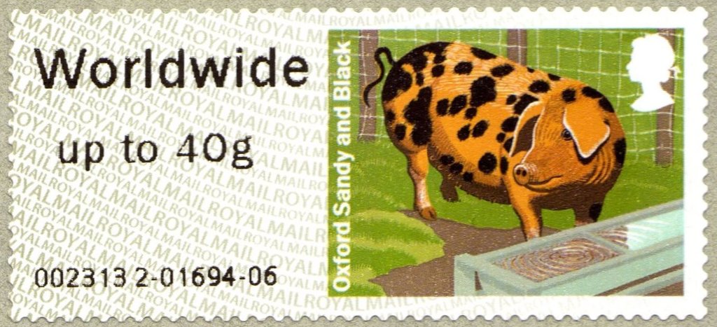 Visibility: public Image owner: none postage 4/24/2012 1st Class up to 100g multi issue=Post & Go 2012 dt=farm animals (2012) d=pigs - Oxford Sandy & Black unwmk perf=17 Crops No visible images cropped from this one. Measurements Resolution is unknown. Source Source name: Colnect File URL: http://i.colnect.net/images/b/2299/391/Oxford-Sandy--amp--Black-Pig-Sus-scrofa-domestica.jpg Uploaded December 1, 2014, 4:41 pm by Stan Shebs |