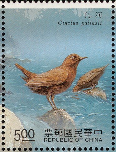 Visibility: public Image owner: none postage 8/24/1991 $5 multi dt=River birds d=Cinclus pallasii Crops No visible images cropped from this one. Measurements Resolution is unknown. Source Source name: Colnect File URL: http://i.colnect.net/b/2194/092/Brown-Dipper-Cinclus-pallasii.jpg Uploaded December 9, 2014, 3:06 pm by Stan Shebs |