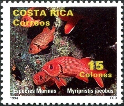 Visibility: public Image owner: none postage 4/29/1994 15col multi dt=marine life (1994 Costa Rica) d=Myripristis jacobus (1994 Costa Rica) unwmk Crops No visible images cropped from this one. Measurements Resolution is unknown. Source Source name: Colnect File URL: http://i.colnect.net/b/2198/509/Blackbar-Soldierfish-Myripristis-jacobus.jpg Uploaded December 9, 2014, 7:36 pm by Stan Shebs |