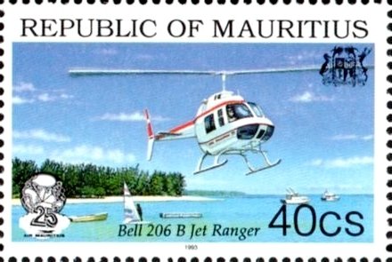 Visibility: public Image owner: none postage 6/14/1993 40c multi issue=25th Anniversary of Air Mauritius wmk=mult crown & script CA Crops No visible images cropped from this one. Measurements Resolution is unknown. Source Source name: Colnect File URL: http://i.colnect.net/b/2374/502/Bell-206B-Jet-Ranger.jpg Uploaded December 15, 2014, 5:44 pm by Stan Shebs |