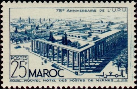 Visibility: public Image owner: none postage 10/1949 25fr issue=UPU 75th d=Postal Administration Building unwmk Crops No visible images cropped from this one. Measurements Resolution is unknown. Source Source name: Colnect File URL: http://i.colnect.net/images/b/848/403/Post-new-Hotel-in-Meknes.jpg Uploaded August 22, 2014, 10:54 pm by Stan Shebs |
