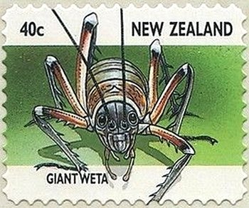 Visibility: public Image owner: none postage 10/1/1997 40c multi dt=insects (1997 New Zealand) d=Giant Weta wmk=multiple NZ & star Crops No visible images cropped from this one. Measurements Resolution is unknown. Source Source name: Colnect File URL: http://i.colnect.net/b/2247/691/Giant-Weta-Deinacrida-sp.jpg Uploaded December 19, 2014, 5:45 pm by Stan Shebs |