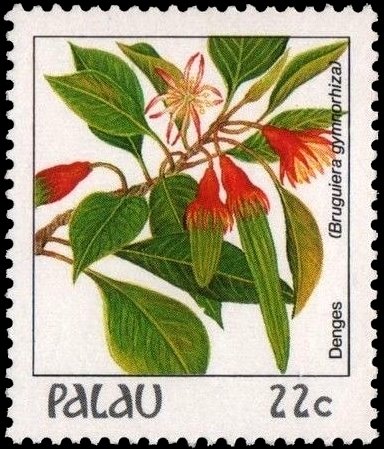 Visibility: public Image owner: none postage 3/12/1987 22c multi dt=flowers (1987 Palau) d=denges (Bruguiera gymnorhiza) unwmk perf=14.25x14 Crops No visible images cropped from this one. Measurements Resolution is unknown. Source Source name: Colnect File URL: http://i.colnect.net/b/2313/330/Large-leafed-Orange-Mangrove-Bruguiera-gymnorhiza.jpg Uploaded December 20, 2014, 12:10 am by Stan Shebs |