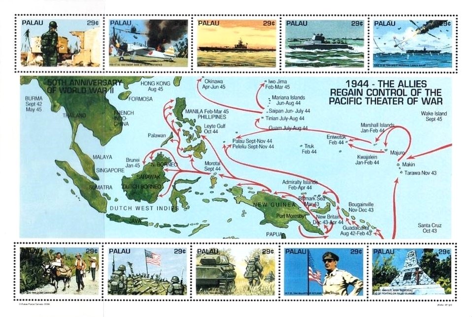 Visibility: public Image owner: none Crops No visible images cropped from this one. Measurements Resolution is unknown. Source Source name: Colnect File URL: http://i.colnect.net/b/2324/407/War-in-the-Pacific-in-1944.jpg Uploaded December 20, 2014, 12:10 am by Stan Shebs |