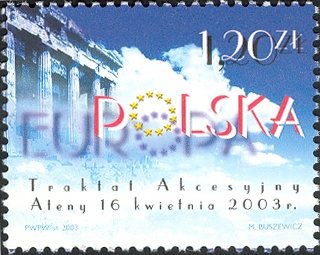 Visibility: public Image owner: none postage 4/16/2003 1.20z multi issue=Poland in the European Union unwmk Crops No visible images cropped from this one. Measurements Resolution is unknown. Source Source name: Colnect File URL: http://i.colnect.net/images/b/1987/045/Signing-of-European-Union-Accession-Treaty.jpg Uploaded December 20, 2014, 6:11 pm by Stan Shebs |