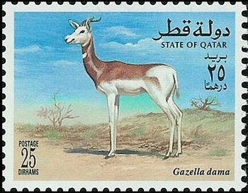 Visibility: public Image owner: none postage 1/1/1996 25dh multi dt=Gazelles and Beira Antelope d=Gazella dama (1996) unwmk perf=11.75x11.5 Crops No visible images cropped from this one. Measurements Resolution is unknown. Source Source name: Colnect File URL: http://i.colnect.net/b/2189/041/Dama-Gazelle-Gazella-dama.jpg Uploaded December 21, 2014, 6:05 pm by Stan Shebs |