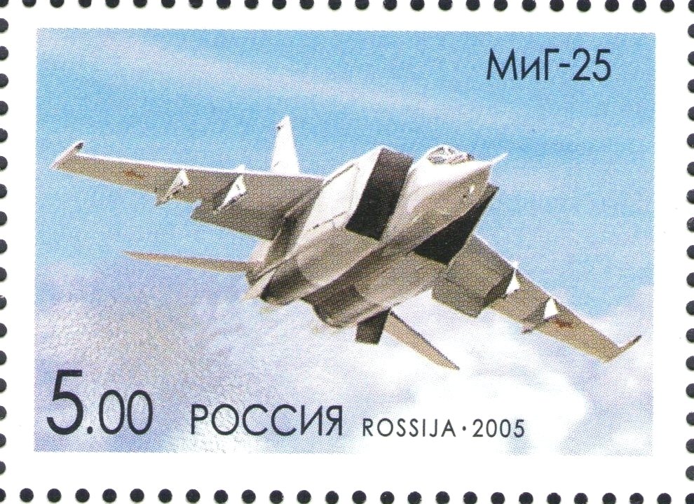 Visibility: public Image owner: none postage 7/6/2005 5.00r multi issue=Birth Centenary of A.I. Mikoyan dt=MiG aircraft d=MiG-25 unwmk perf=12 Crops No visible images cropped from this one. Measurements Resolution is unknown. Source Source name: Colnect File URL: http://i.colnect.net/b/2359/145/MiG-25.jpg Uploaded December 21, 2014, 8:10 pm by Stan Shebs |