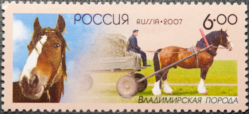 Visibility: public Image owner: none postage 11/7/2007 6.00r multi dt=Native Horse Breeds d=Vladimir breed unwmk perf=12 Crops No visible images cropped from this one. Measurements Resolution is unknown. Source Source name: Colnect File URL: http://i.colnect.net/b/2281/018/Vladimir-Draft-Horse-Equus-ferus-caballus.jpg Uploaded December 21, 2014, 8:34 pm by Stan Shebs |