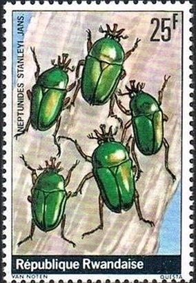 Visibility: public Image owner: none postage 5/22/1978 25fr multi dt=beetles (1978 Rwanda) d=Neptunides stanleyi unwmk Crops No visible images cropped from this one. Measurements Resolution is unknown. Source Source name: Colnect File URL: http://i.colnect.net/b/2396/417/Scarab-Beetle-Neptunides-stanleyi.jpg Uploaded December 22, 2014, 5:53 pm by Stan Shebs |