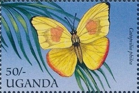 Visibility: public Image owner: none postage 6/26/1996 50sh multi issue=Butterflies 1996 dt=butterflies (1996 Uganda) d=Catopsilia philea unwmk perf=14 Crops No visible images cropped from this one. Measurements Resolution is unknown. Source Source name: Colnect File URL: http://i.colnect.net/b/2278/238/Orange-barred-Sulphur-Catopsilia-philea.jpg Uploaded December 24, 2014, 6:13 pm by Stan Shebs |