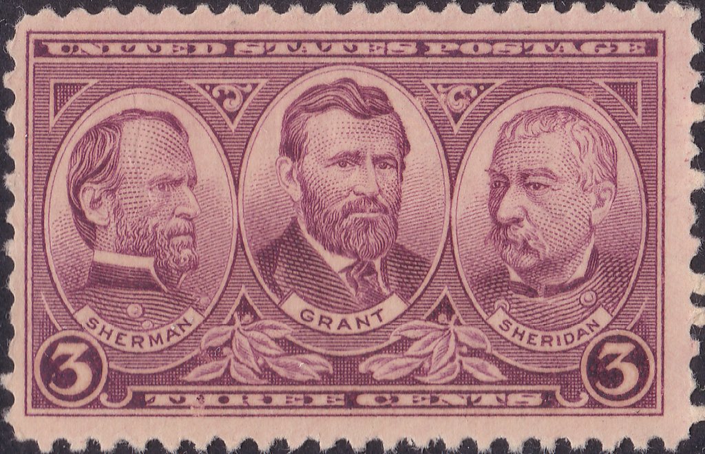 Visibility: public Image owner: none postage 2/18/1937 3c pur issue=Army d=Sherman & Grant & Sheridan unwmk perf=11x10.5 Crops No visible images cropped from this one. Measurements Resolution is unknown. Source Source name: Colnect File URL: http://i.colnect.net/b/1891/252/Generals-William-T-Sherman-Ulysses-S-Grant-and-Philip-H-.jpg Uploaded December 26, 2014, 6:44 pm by Stan Shebs |