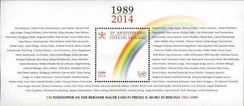 Visibility: public Image owner: none Crops No visible images cropped from this one. Measurements Resolution is unknown. Source Source name: Colnect File URL: http://i.colnect.net/b/2395/599/25th-Anniversary-of-the-Fall-of-the-Berlin-Wall.jpg Uploaded December 27, 2014, 6:46 pm by Stan Shebs |