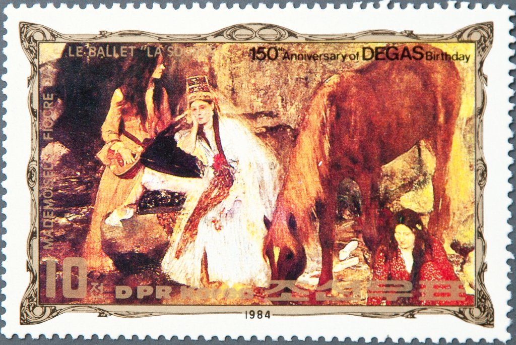 Visibility: public Image owner: none postage 6/10/1984 10ch multi issue=150th Anniversary of the Birth of Edgar Degas unwmk perf=11.75 Crops No visible images cropped from this one. Measurements Resolution is unknown. Source Source name: Colnect File URL: http://i.colnect.net/b/2290/294/Edgar-Degas---Mlle-Fiocre-in-the-Ballet--The-Source-.jpg Uploaded January 8, 2015, 4:06 pm by Stan Shebs |