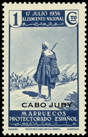 Visibility: public Image owner: none postage 1c bl issue=1937 d=Harkeno rifleman ovpt=CABO JUBY oc=blk on=issuer=Spanish Morocco-issue=1 year of Spanish Civil War-1c unwmk Crops No visible images cropped from this one. Measurements Resolution is unknown. Source Source name: Colnect File URL: http://i.colnect.net/b/2375/354/Stamps-of-Morocco-National-uprising.jpg Uploaded January 8, 2015, 5:57 pm by Stan Shebs |
