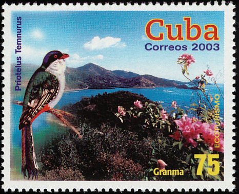 Visibility: public Image owner: none postage 9/27/2003 75c multi issue=Ecotourism d=Priotelus temnurus (2003) unwmk perf=13x12.5 Crops No visible images cropped from this one. Measurements Resolution is unknown. Source Source name: Colnect File URL: http://i.colnect.net/images/b/2134/179/Cuban-Trogon-Priotelus-temnurus-Granma-National-Park.jpg Uploaded January 21, 2015, 11:42 pm by Stan Shebs |