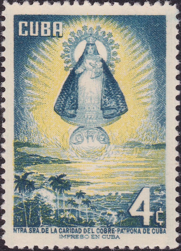 Visibility: public Image owner: none postage 9/8/1956 4c bl&yel d=Virgin of Charity wmk=star (Cuba) perf=12.5 Crops No visible images cropped from this one. Measurements Resolution is unknown. Source Source name: Colnect File URL: http://i.colnect.net/images/b/1948/471/Saint-Virgin-from-El-Cobre.jpg Uploaded January 21, 2015, 11:49 pm by Stan Shebs |