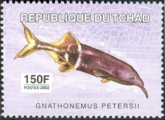 Visibility: public Image owner: none postage 6/2/2003 150fr multi dt=flora & fauna (2003 Chad) d=Gnathonemus petersii unwmk Crops No visible images cropped from this one. Measurements Resolution is unknown. Source Source name: Colnect File URL: http://i.colnect.net/b/2395/307/Elephantnose-Fish-8Gnathonemus-petersii.jpg Uploaded January 31, 2015, 5:16 pm by Stan Shebs |
