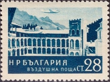 Visibility: public Image owner: none airmail 4/1/1954 28s dpbl issue=1954 air dt=plane over views d=plane over Rila Monastery unwmk perf=13 Crops No visible images cropped from this one. Measurements Resolution is unknown. Source Source name: Colnect File URL: http://i.colnect.net/images/b/2159/645/Rila-Monastery.jpg Uploaded February 5, 2015, 4:57 am by Stan Shebs |
