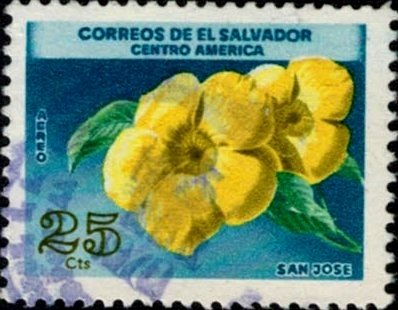 Visibility: public Image owner: none postage 1/6/1965 25c multi issue=flowers 1965 dt=flowers (1965 El Salvador) d=Allamanda cathartica (1965) unwmk Crops No visible images cropped from this one. Measurements Resolution is unknown. Source Source name: Colnect File URL: http://i.colnect.net/b/2418/924/Allamanda-cathartica.jpg Uploaded February 17, 2015, 12:19 am by Stan Shebs |