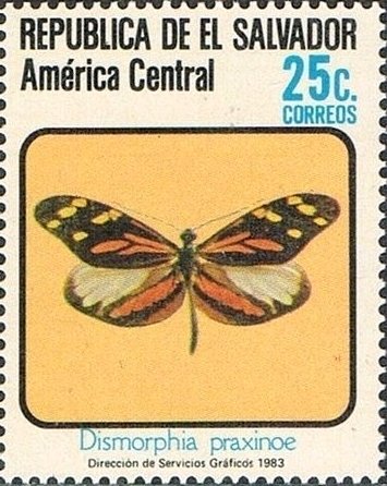 Visibility: public Image owner: none postage 5/31/1983 25c multi dt=butterflies (1983 El Salvador) d=Dismorphia praxinoe unwmk Crops No visible images cropped from this one. Measurements Resolution is unknown. Source Source name: Colnect File URL: http://i.colnect.net/b/2271/740/Tiger-Mimic-White-Dismorphia-praxinoe.jpg Uploaded February 17, 2015, 12:29 am by Stan Shebs |