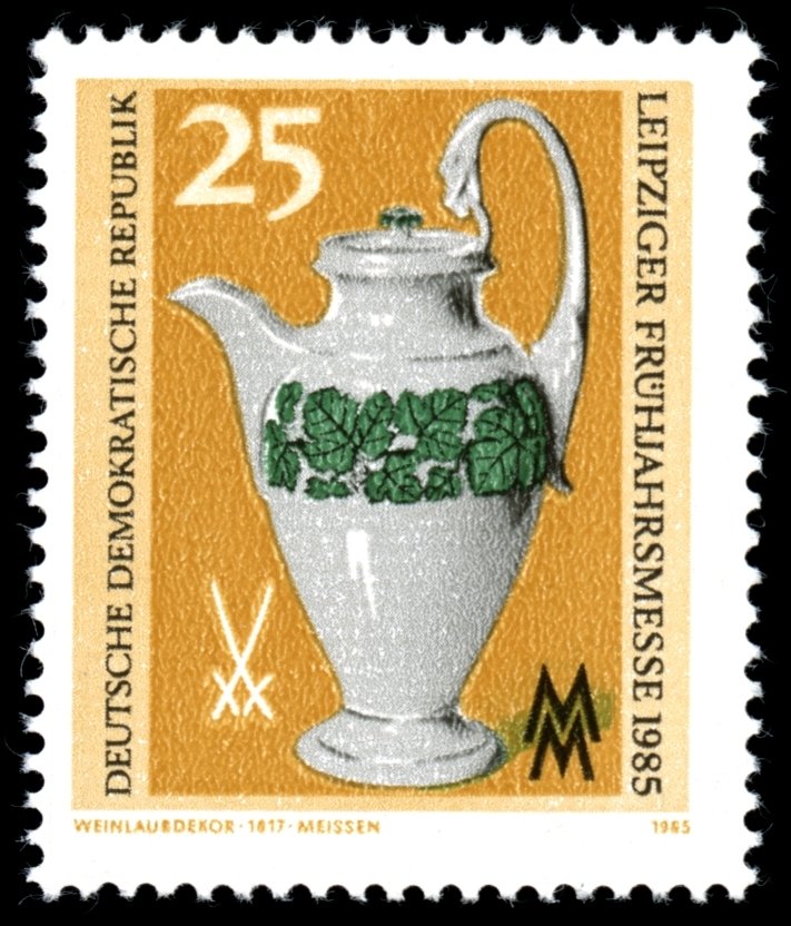 Visibility: public Image owner: none postage 3/5/1985 25pf multi issue=Leipzig Spring Fair 1985 d=Kanne Meissen porcelain unwmk Crops No visible images cropped from this one. Measurements Resolution is unknown. Source Source name: Colnect File URL: http://i.colnect.net/b/1982/513/Jug-Meissen-porcelain.jpg Uploaded February 17, 2015, 4:44 am by Stan Shebs |