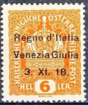 Visibility: public Image owner: none postage 6h dporg issue=1918a d=Austrian crown ovpt=Regno d'Italia//Venezia Giulia//3. XI. 18. oc=blk on=issuer=Austria-1916-6h-dporg unwmk perf=12.5 Crops No visible images cropped from this one. Measurements Resolution is unknown. Source Source name: Colnect File URL: http://i.colnect.net/b/1698/355/Italian-Occupation-of-Veneto-Giulia.jpg Uploaded February 18, 2015, 5:49 am by Stan Shebs |