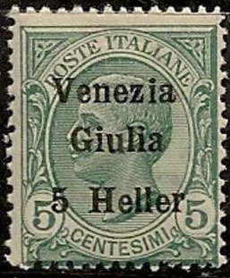 Visibility: public Image owner: none postage 1918 5h grn issue=1918c d=Victor Emmanuel III (profile) ovpt=Venezia//Giulia//(value) Heller oc=blk on=issuer=Italy-1906-5c-grn wmk=crown (Italy) perf=14 Crops No visible images cropped from this one. Measurements Resolution is unknown. Source Source name: Colnect File URL: http://i.colnect.net/b/1698/369/Italian-Occupation-of-Veneto-Giulia.jpg Uploaded February 18, 2015, 5:50 am by Stan Shebs |