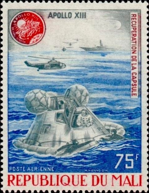 Visibility: public Image owner: none airmail 10/25/1973 75fr multi issue=Conquest of the Moon unwmk perf=13 Crops No visible images cropped from this one. Measurements Resolution is unknown. Source Source name: Colnect File URL: http://i.colnect.net/images/b/2425/225/Apollo-13--ndash--Landing-of-the-Capsule.jpg Uploaded February 18, 2015, 5:33 pm by Stan Shebs |