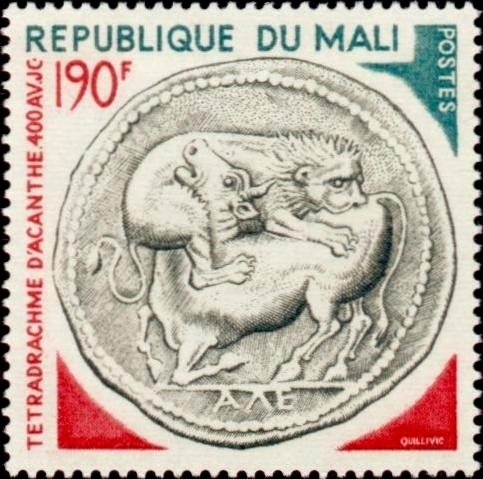 Visibility: public Image owner: none postage 10/13/1975 190fr multi dt=ancient coins (1975) d=Akanthos Tetradrachm 400 BC Lion Attacking Bull obverse unwmk perf=13 Crops No visible images cropped from this one. Measurements Resolution is unknown. Source Source name: Colnect File URL: http://i.colnect.net/images/b/2431/291/Akanthos-Tetradrachm-400-BC-Lion-Attacking-Bull-obverse.jpg Uploaded February 18, 2015, 5:38 pm by Stan Shebs |