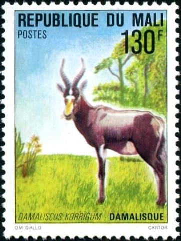 Visibility: public Image owner: none postage 4/23/1979 130fr multi issue=Endangered Animals 1979 d=Damaliscus korrigum unwmk Crops No visible images cropped from this one. Measurements Resolution is unknown. Source Source name: Colnect File URL: http://i.colnect.net/images/b/2503/836/Korrigum-Damaliscus-korrigum.jpg Uploaded February 18, 2015, 5:44 pm by Stan Shebs |