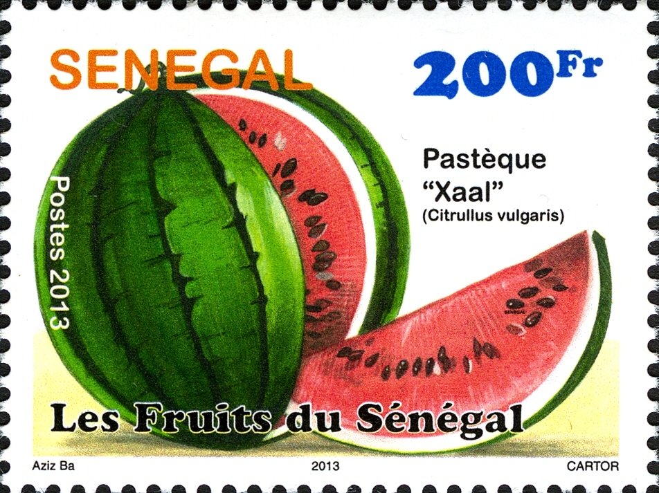 Visibility: public Image owner: none postage 8/27/2013 200fr multi dt=fruits from Senegal d=watermelon unwmk Crops No visible images cropped from this one. Measurements Resolution is unknown. Source Source name: Colnect File URL: http://i.colnect.net/images/b/2333/916/African-Melon--ldquo-Xaal-rdquo--Citrullus-vulgaris.jpg Uploaded March 14, 2015, 1:27 pm by Stan Shebs |
