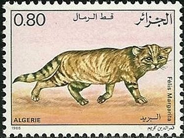 Visibility: public Image owner: none postage 1/23/1986 0.80d multi dt=Wild Cats (1986 Algeria) d=Felis margarita (1986) unwmk Crops No visible images cropped from this one. Measurements Resolution is unknown. Source Source name: Colnect File URL: http://i.colnect.net/b/2561/558/Sand-Cat-Felis-margarita.jpg Uploaded March 17, 2015, 7:40 pm by Stan Shebs |