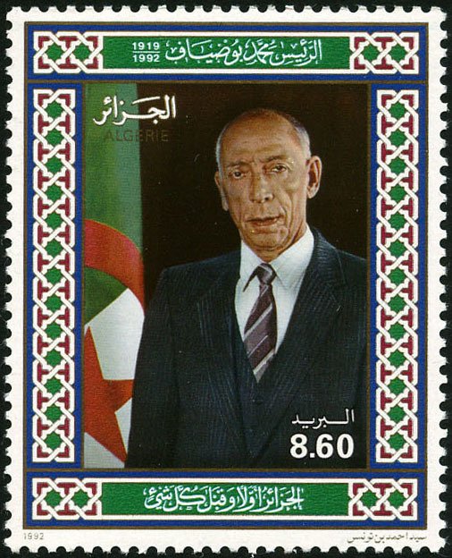 Visibility: public Image owner: none postage 11/1/1992 8.60d multi issue=Mohammed Boudiaf d=Mohammed Boudiaf unwmk perf=11.75 Crops No visible images cropped from this one. Measurements Resolution is unknown. Source Source name: Colnect File URL: http://i.colnect.net/b/2495/733/President-Mohammad-Boudiaf.jpg Uploaded March 17, 2015, 7:44 pm by Stan Shebs |