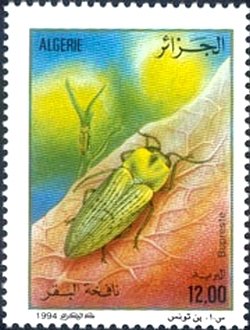 Visibility: public Image owner: none postage 11/16/1994 12.00d multi dt=insects (1994 Algeria) d=Buprestis sp. unwmk Crops No visible images cropped from this one. Measurements Resolution is unknown. Source Source name: Colnect File URL: http://i.colnect.net/b/2495/752/Jewel-Beetle-Buprestis-sp.jpg Uploaded March 17, 2015, 7:45 pm by Stan Shebs |