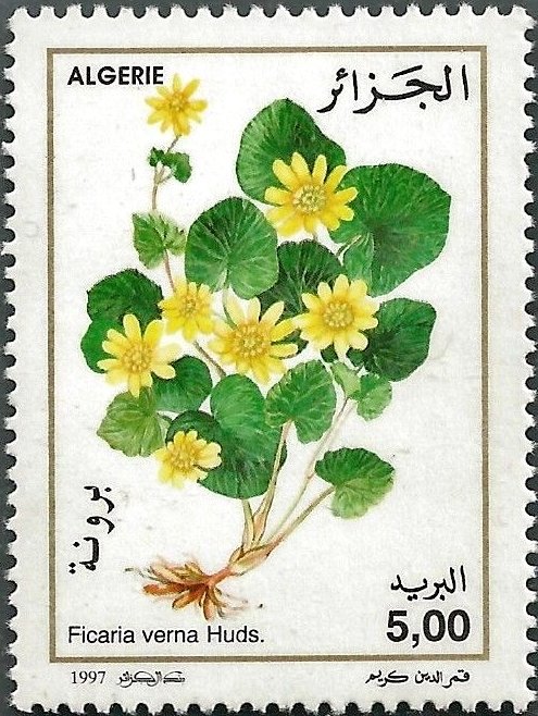 Visibility: public Image owner: none postage 4/23/1997 5.00d multi dt=flowers (1997 Algeria) d=Ficaria verna (1997) unwmk Crops No visible images cropped from this one. Measurements Resolution is unknown. Source Source name: Colnect File URL: http://i.colnect.net/b/2498/717/Ficaria-verna.jpg Uploaded March 17, 2015, 7:47 pm by Stan Shebs |